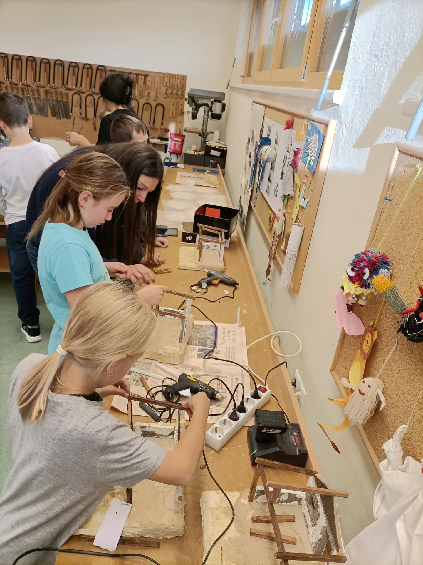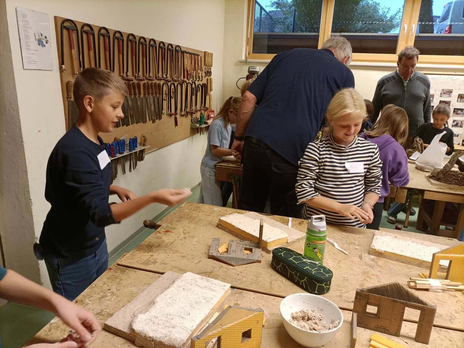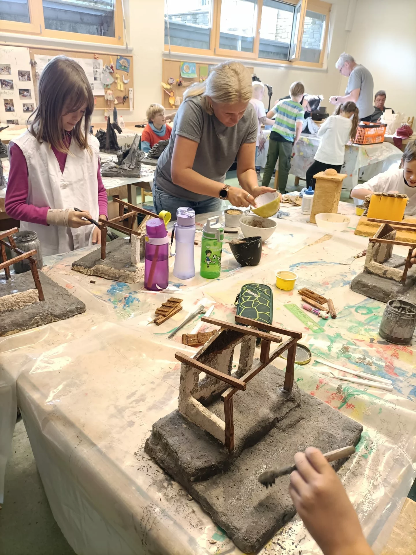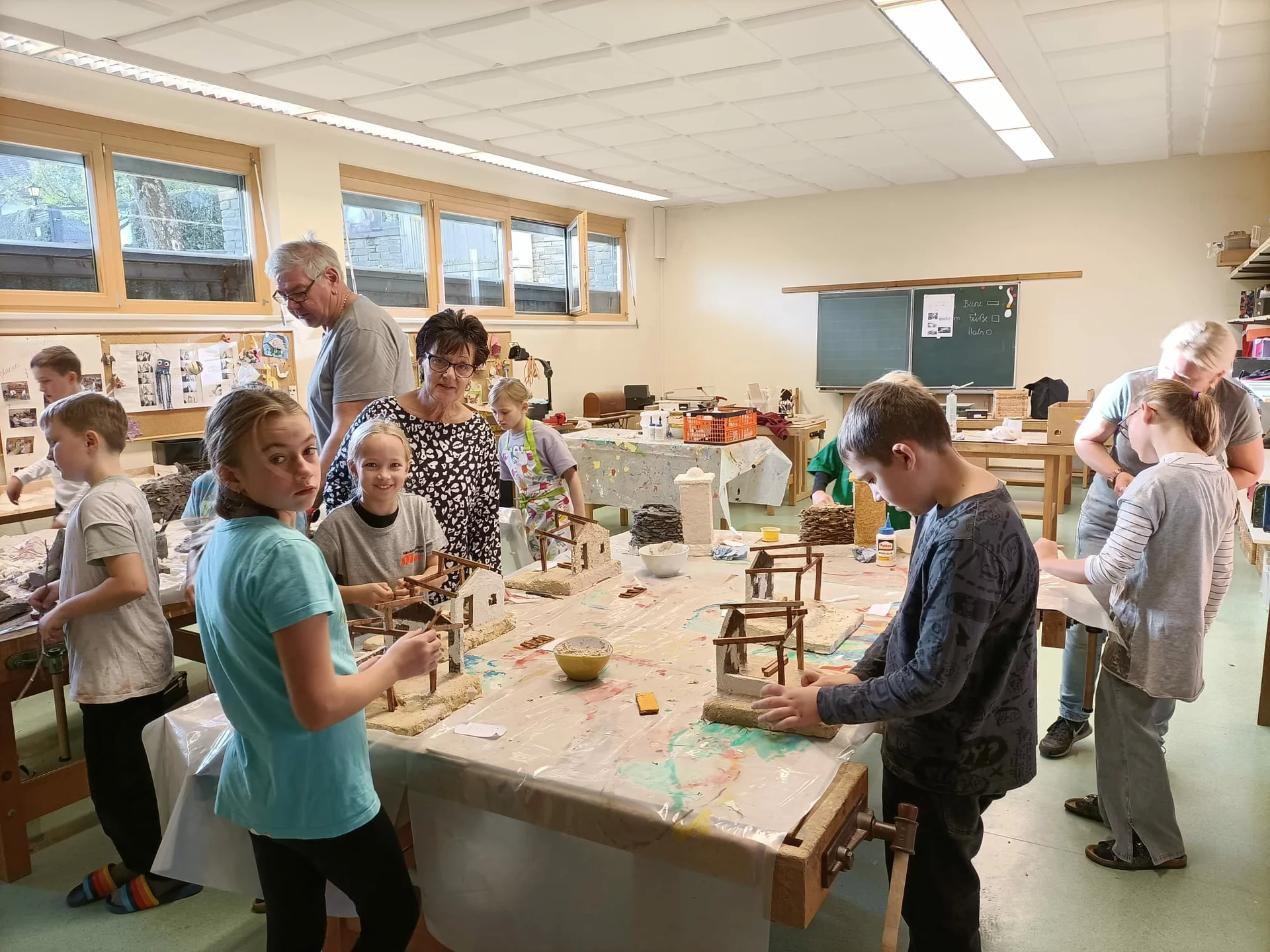 Gemeinsam mit den Mitgliedern des Krippenverein Mutters wurde an jedem Dienstag vormittag fleissig mit den Kindern an ihren Krippen gebaut. Die Kinder waren mit Begeisterung und volle Kreativität und auch jeder Menge Talent voll mit dabei.