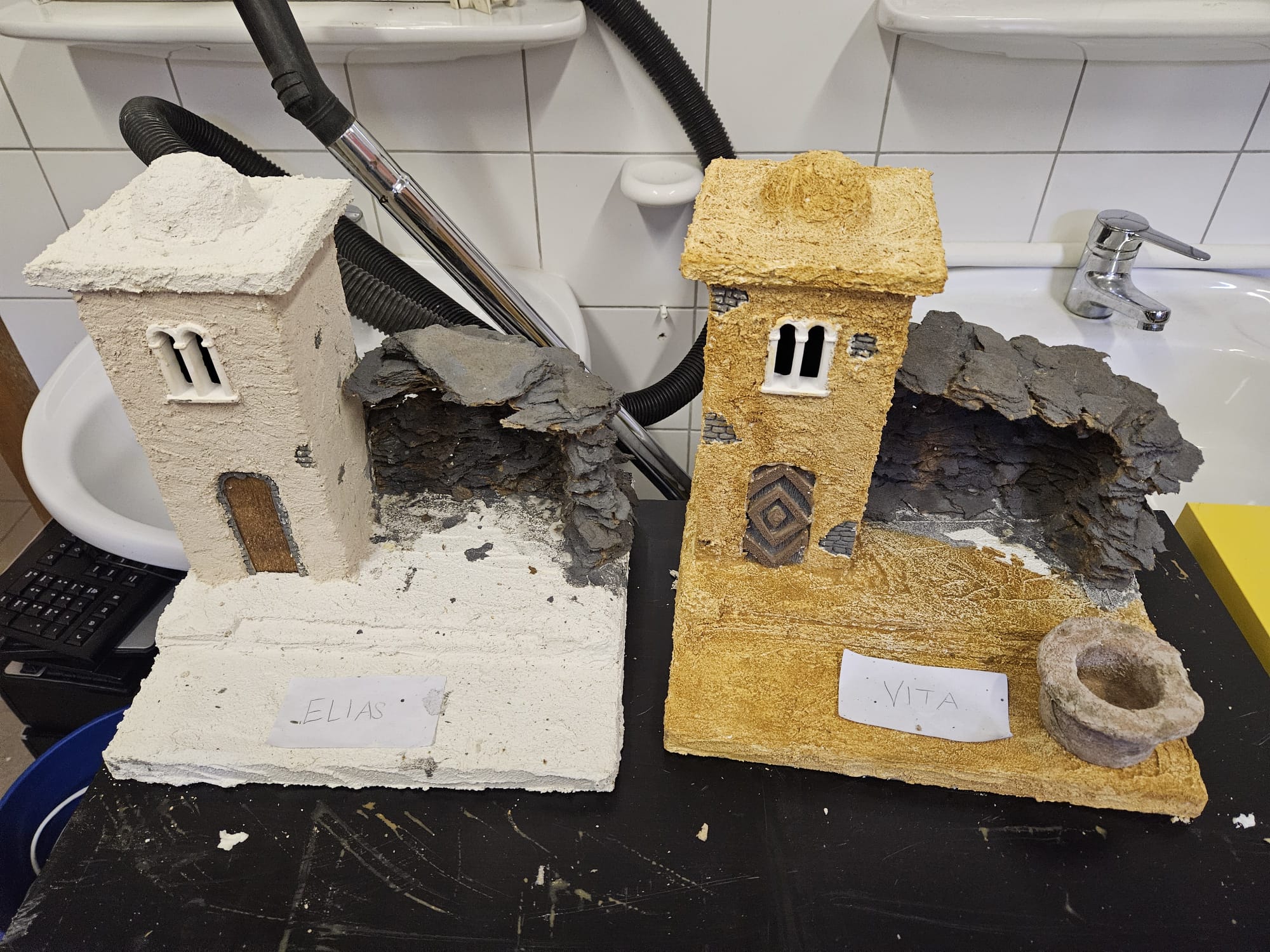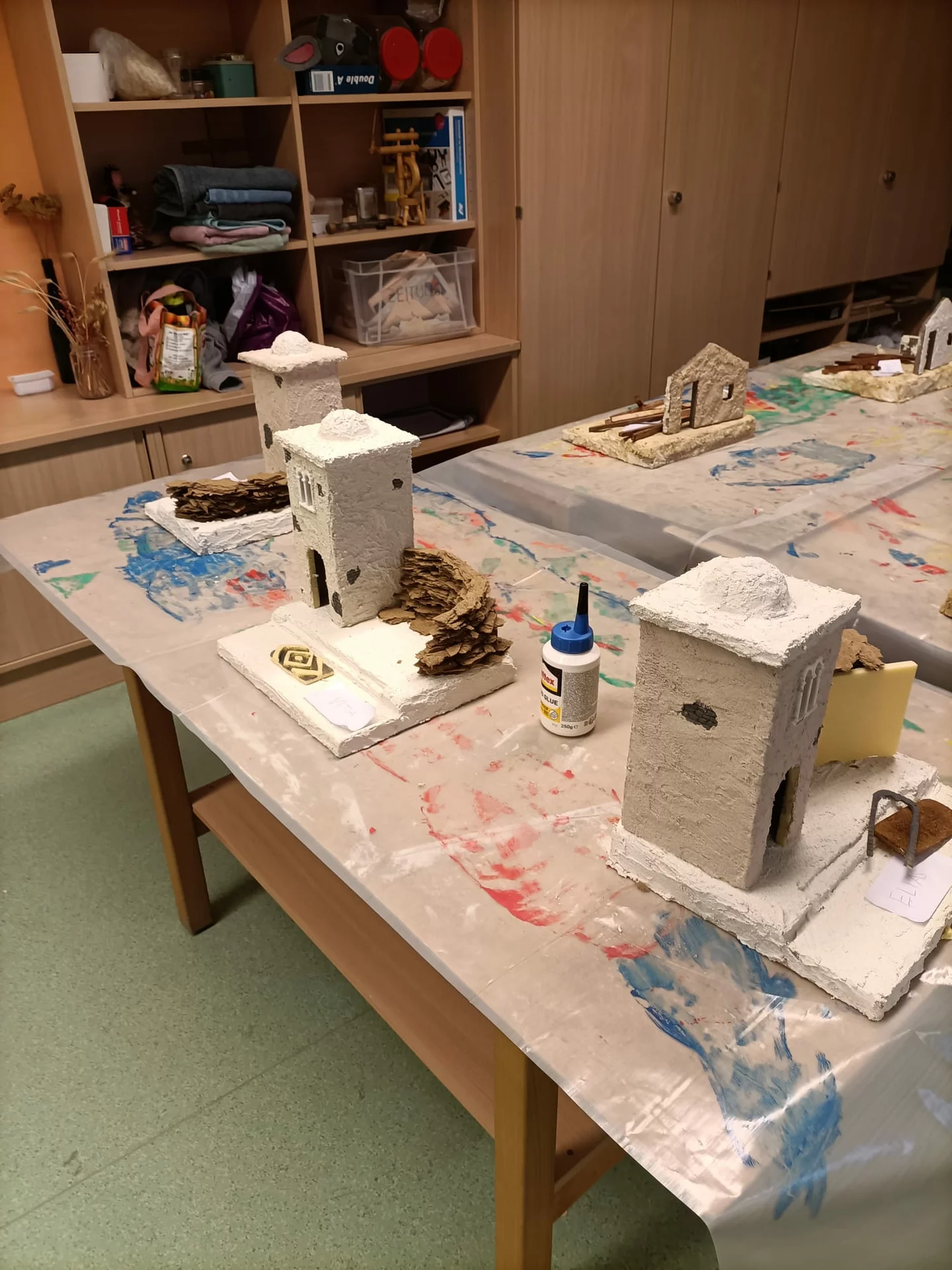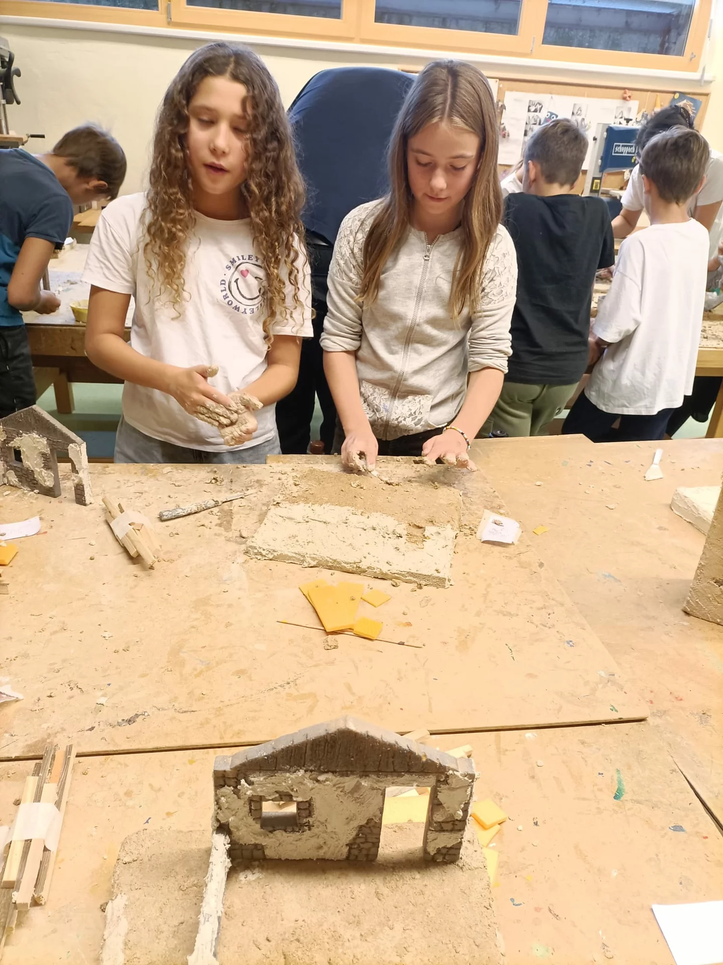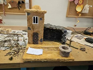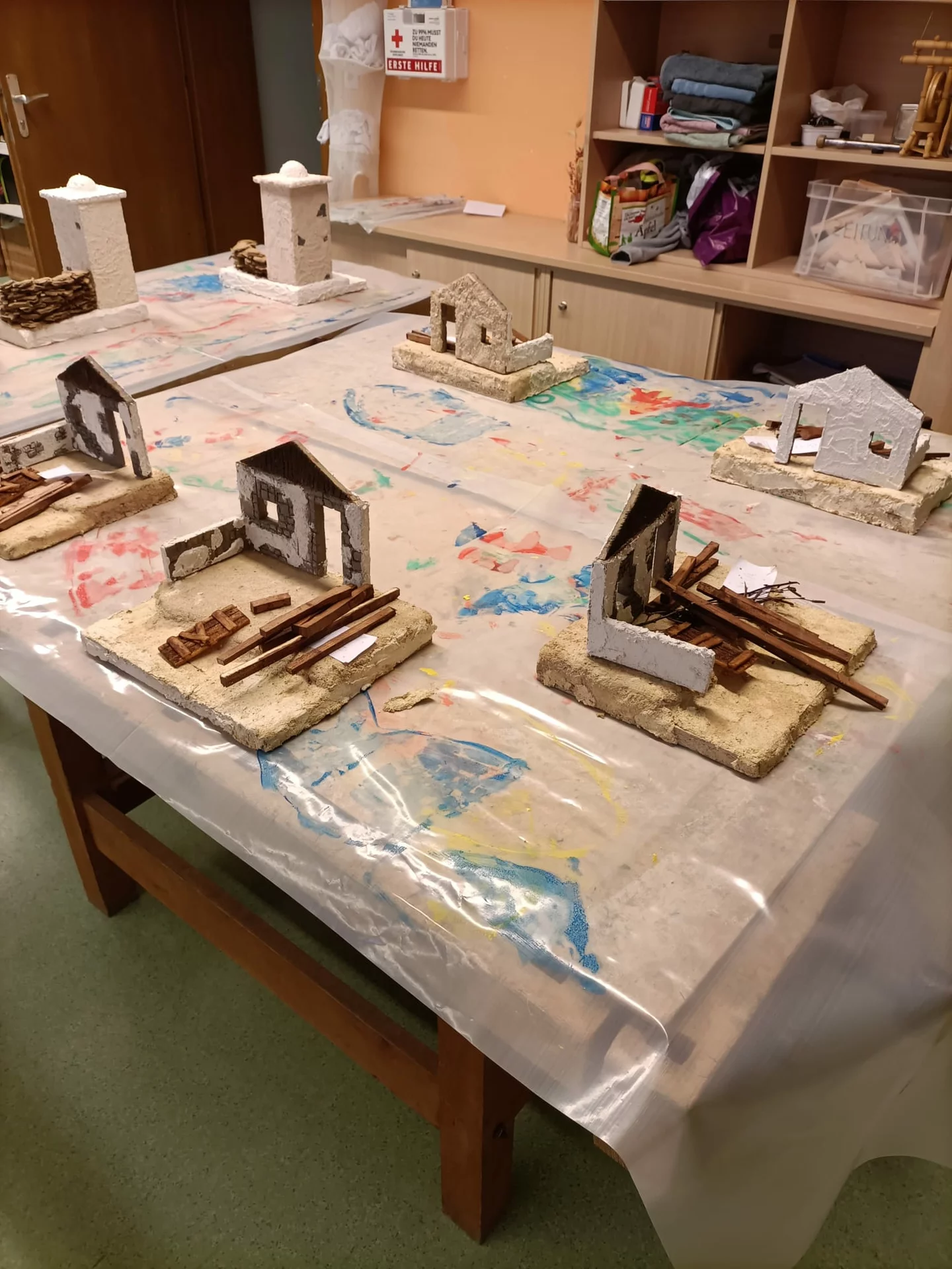 Jetzt geht es mit den Nachmittagen los, bei denen einige der Kinder noch ihre eigenen "Tiroler" oder "Orientalischen" Krippen bauen.