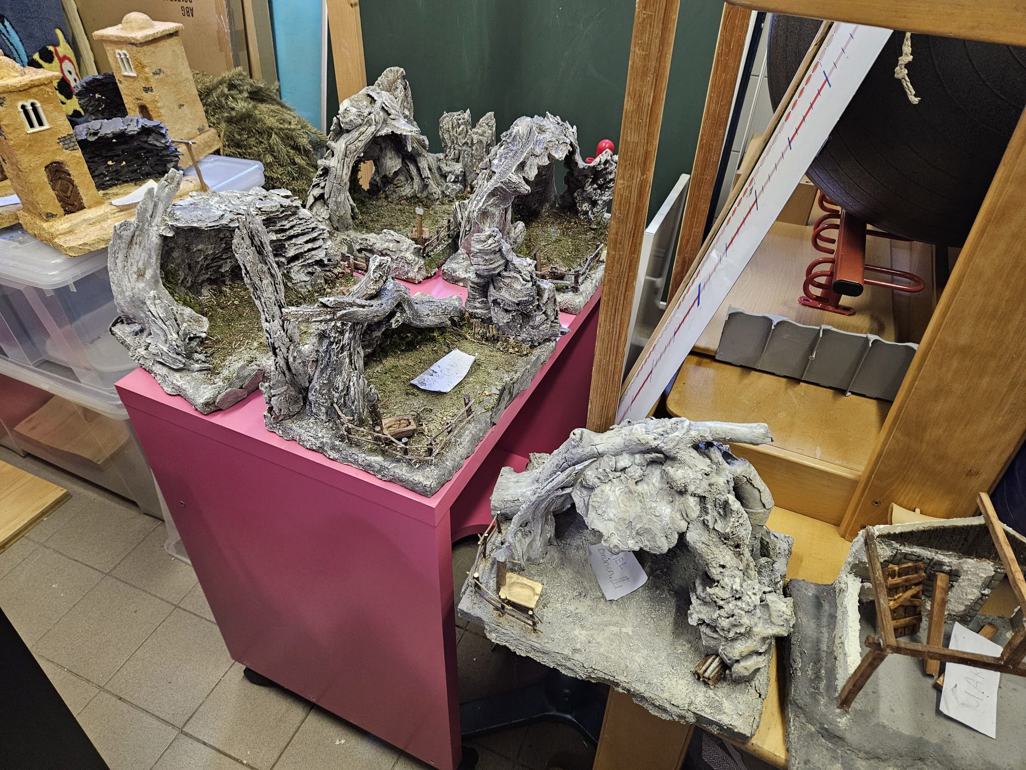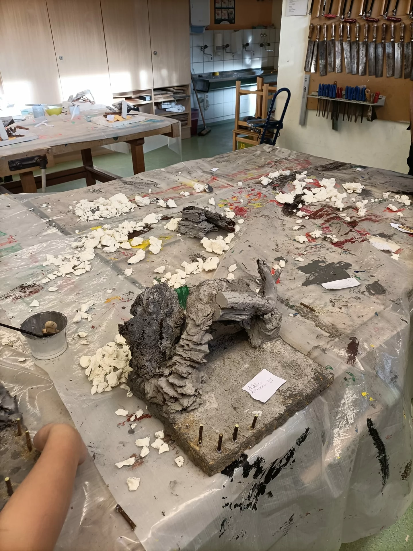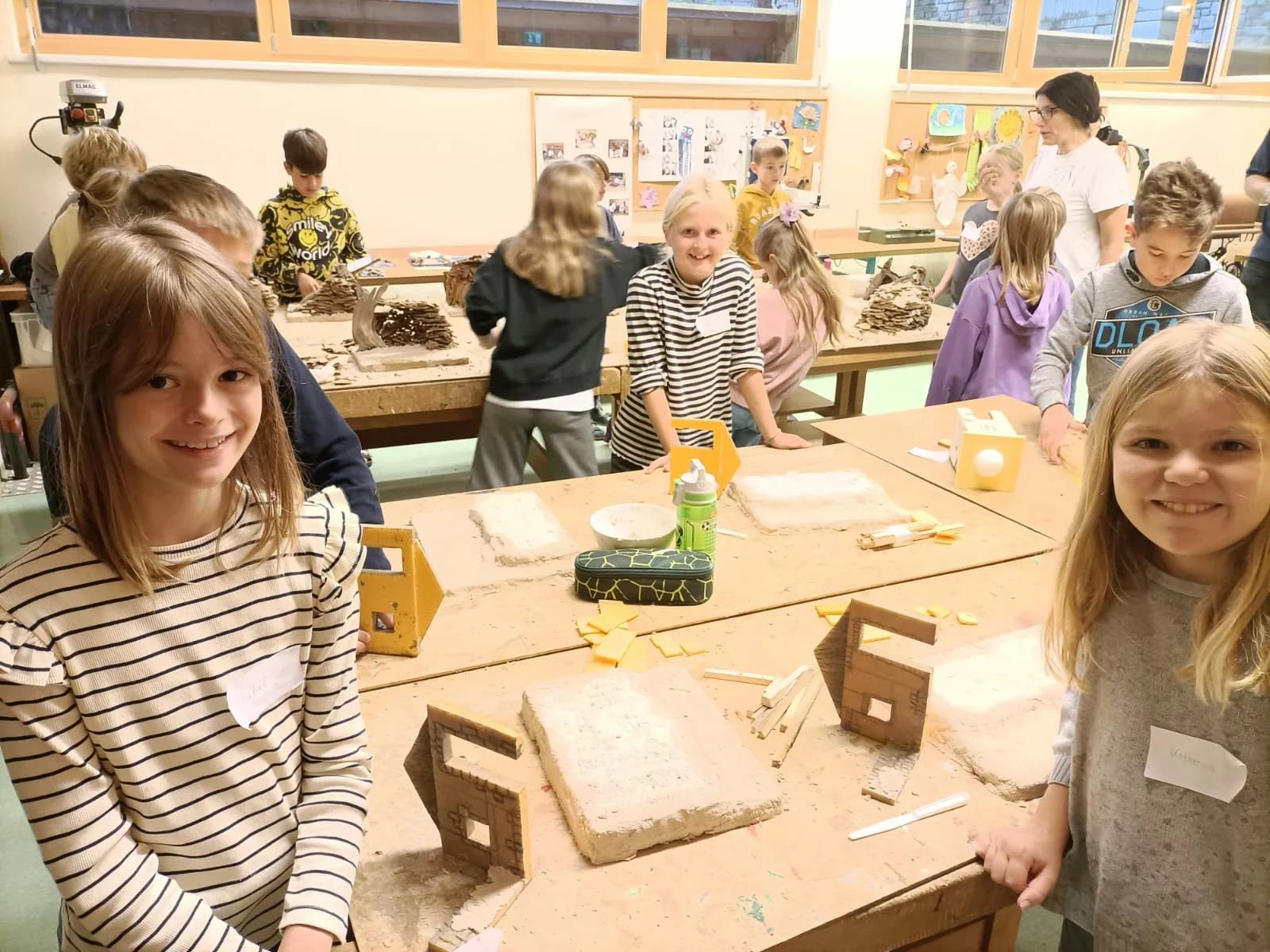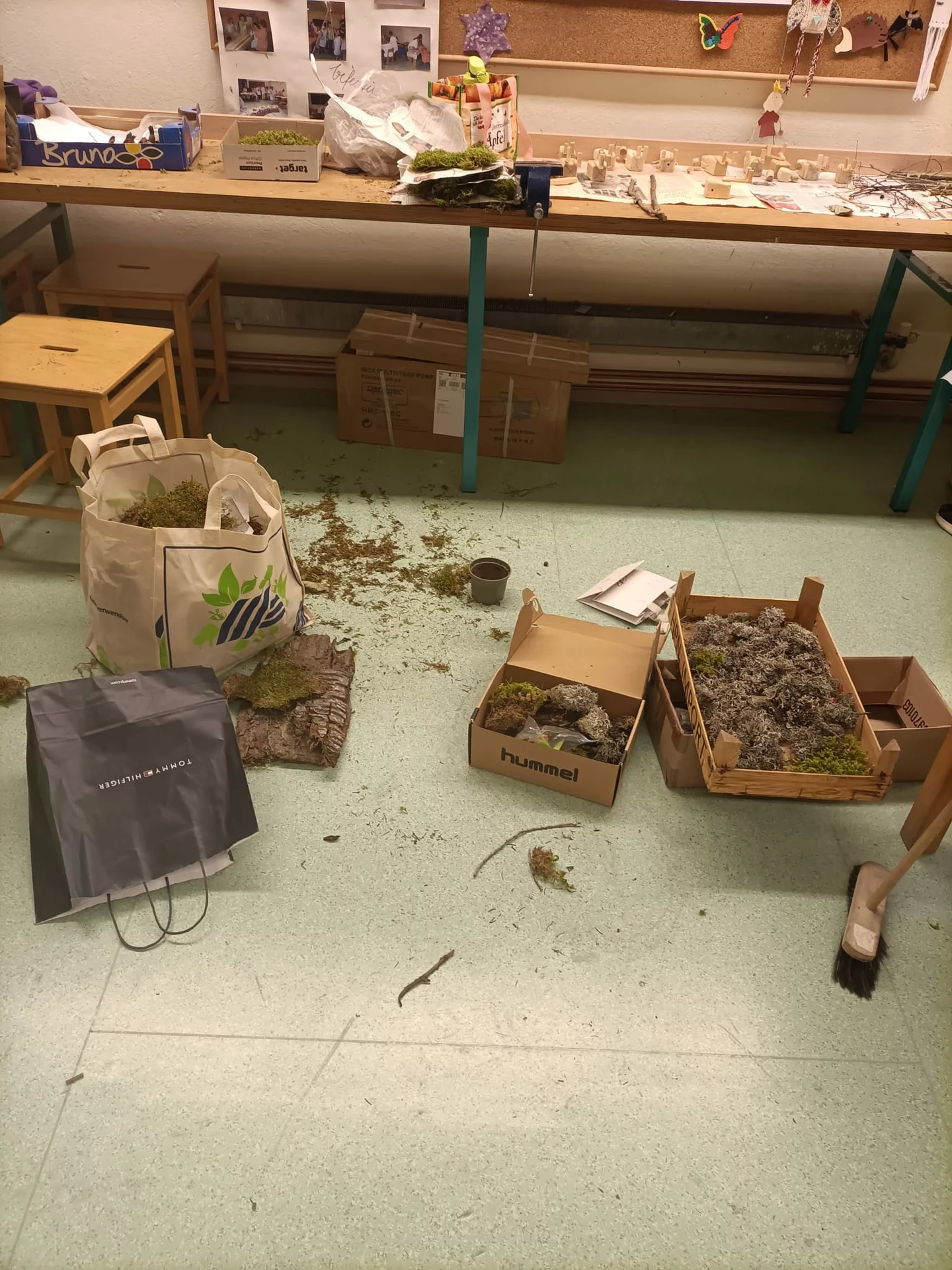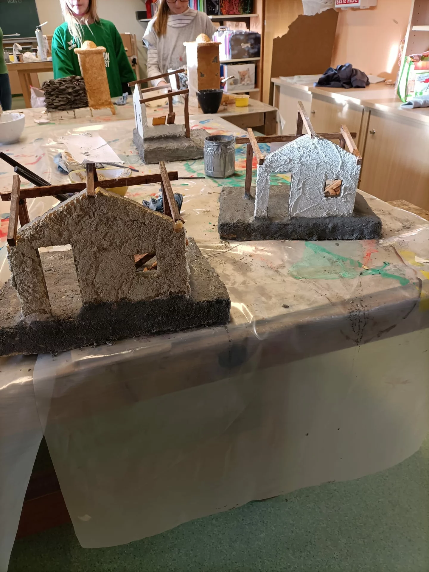 Jetzt geht es mit den Nachmittagen los, bei denen einige der Kinder noch ihre eigenen "Tiroler" oder "Orientalischen" Krippen bauen.