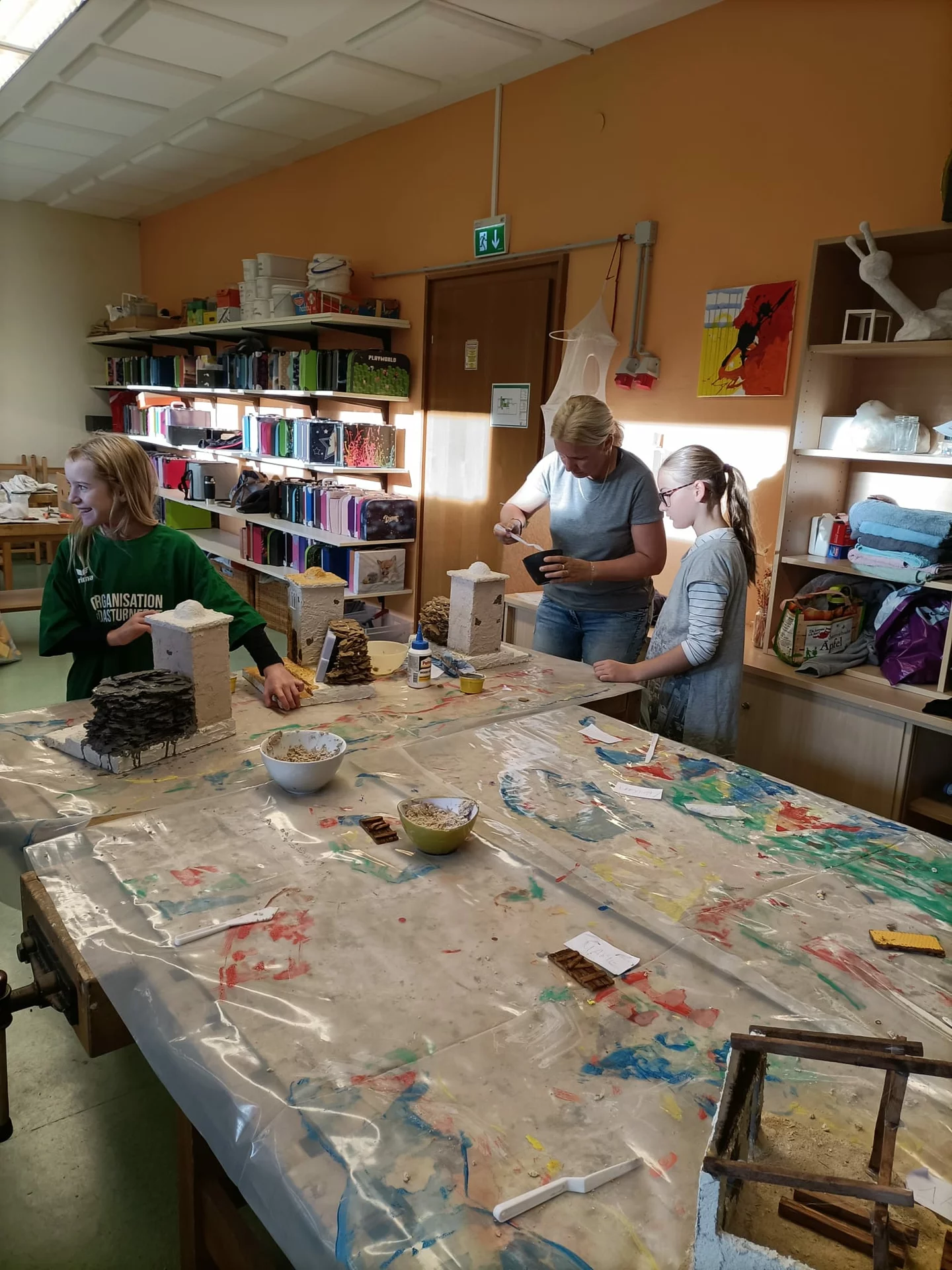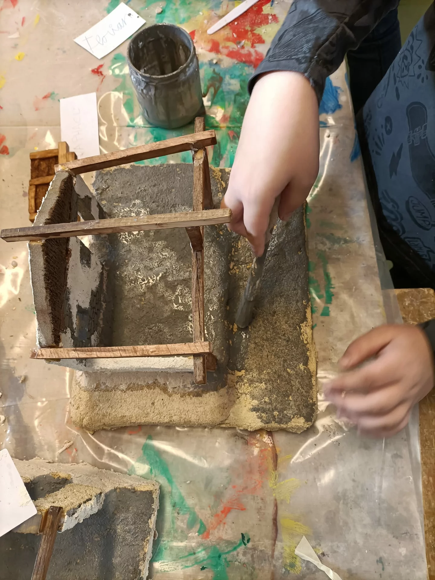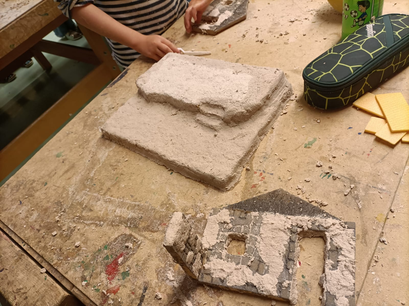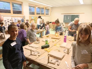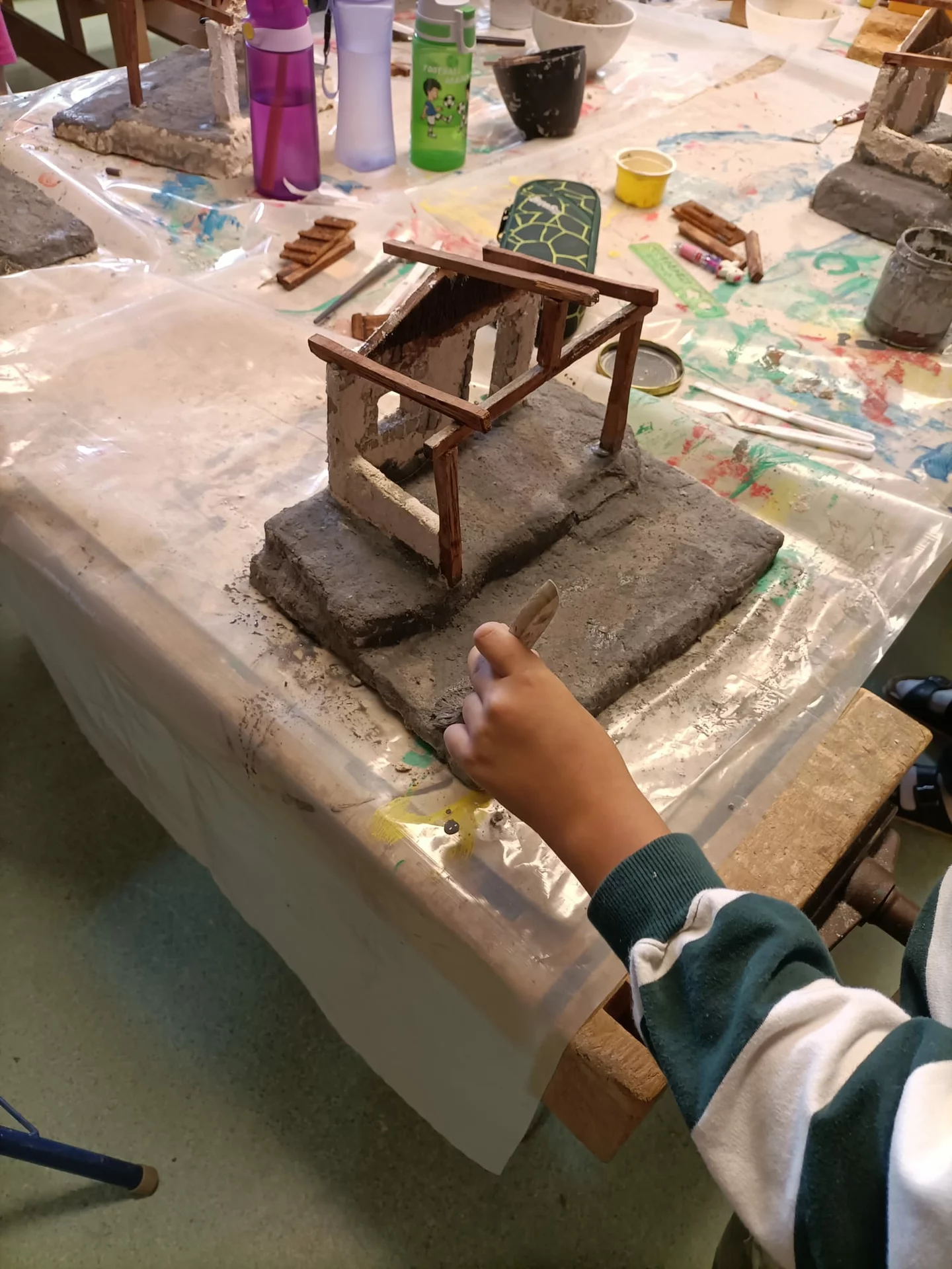 Jetzt geht es mit den Nachmittagen los, bei denen einige der Kinder noch ihre eigenen "Tiroler" oder "Orientalischen" Krippen bauen.